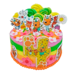 Молоко сгущёное вареное Лакомка, крем на растительных маслах «Арибель», сахар, яйца куриные, паста сахарная для лепки «Модепласт», сироп с ароматом меда,мука пшеничная в/с, вода питьевая, белок яичный (сырой), глазурь шоколадная, масло из коровьего молока, молоко сгущенное с сахаром, патока крахмальная, молоко сухое обезжиренное, пудра сахарная, бренди «Кристалл Люкс», разрыхлители, кислота лимонная, ароматизаторы: Апельсин, Ром.